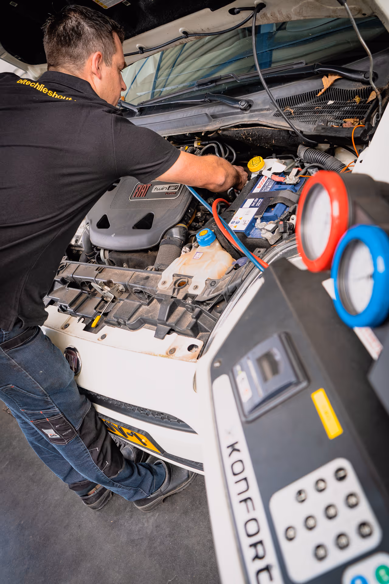 Een aircosysteem verliest koudemiddel, wat leidt tot slechtere koeling en slijtage. Wij vullen het systeem, reinigen het en controleren op lekkage. Voor elektrische rijders is dit extra belangrijk: de airco houdt het accupakket op de juiste temperatuur.
